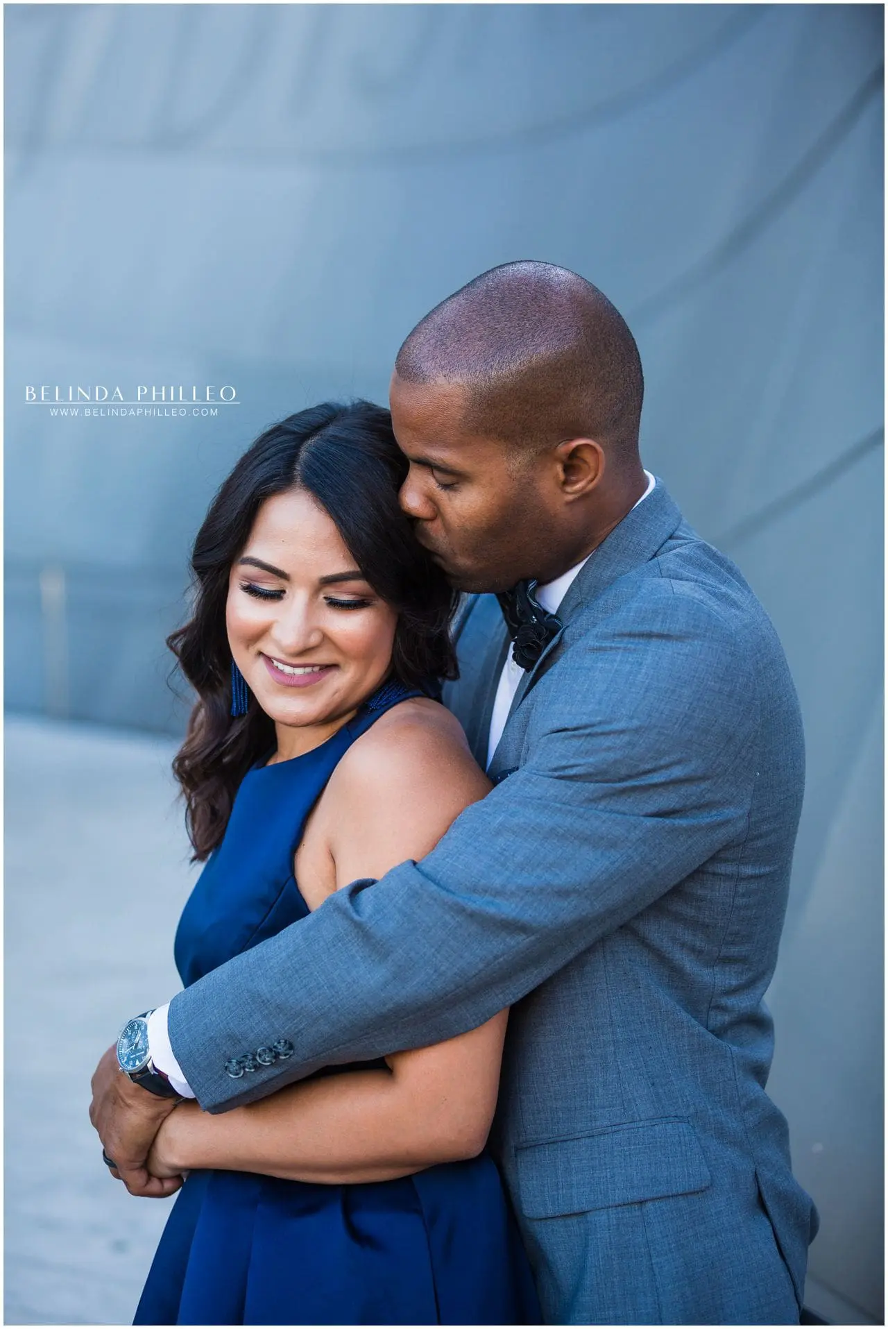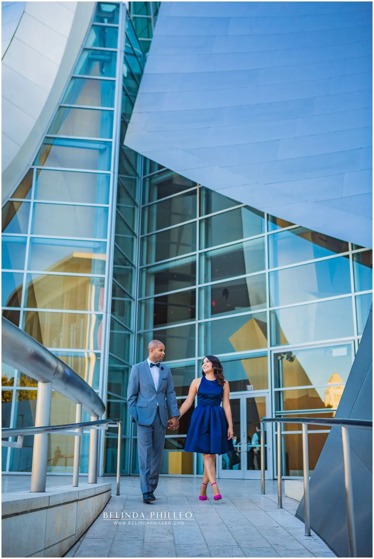 We chose to go with some of the more popular spots because well, they’re classic, and we loved the architecture and city scene. So we started our session at the Walt Disney Concert Hall. I really really like this place because it has such a cool design and makes for an epic backdrop for engagement photos. I love the way the sunset reflected off of the building in the shot below. Swoon!