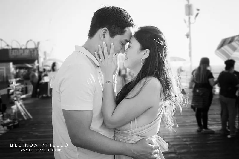 We started Alice and Joseph’s Los Angeles engagement pictures out on the beach in Santa Monica, not too far from where he proposed. These two were naturals! I gave them some easy prompts so they could get comfortable in front of the camera and within minutes Joseph had his beautiful fiance laughing her head off! So cute!