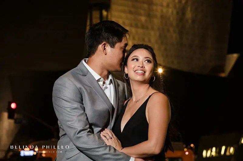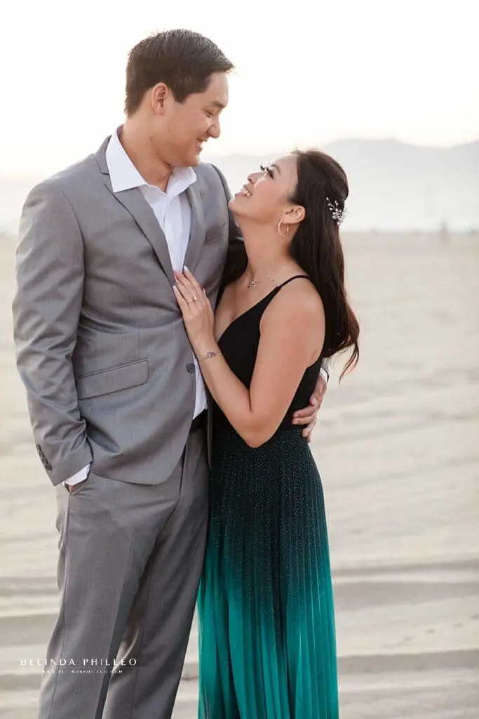 We planned for two locations for this session and the drive times in LA are always a little crazy, so we had to make some judgement calls on where and how we wanted to capture the sunset. The couple decided to change into their formal look and get those photos at the beach before we headed downtown!