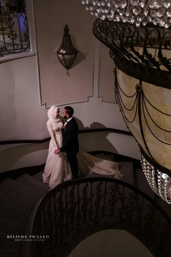Of course, we had to get a few photos of the couple on the staircase as well. I loved being able to get this wide-angle view of the incredible scene.