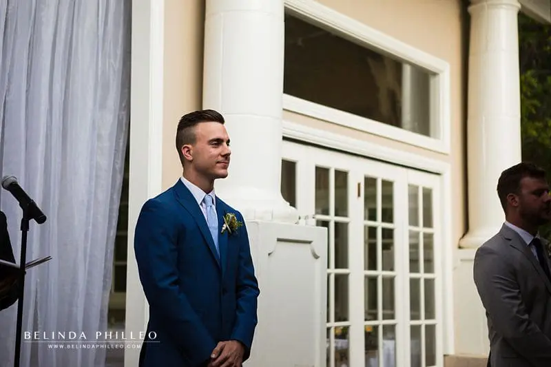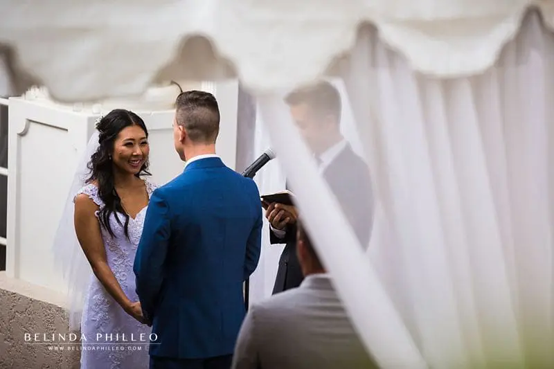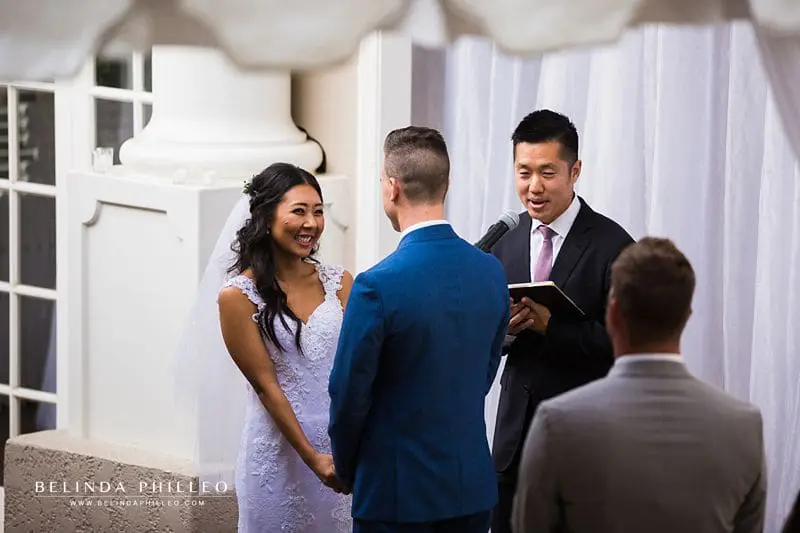Dove Canyon Courtyard Wedding with Navy Blue and Pastel Hues