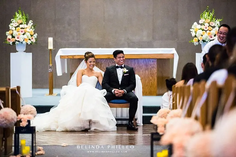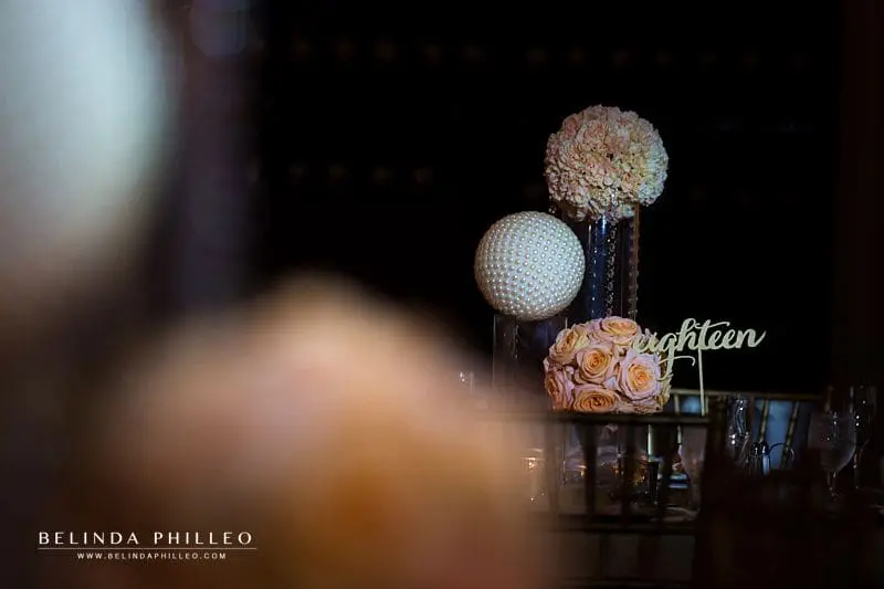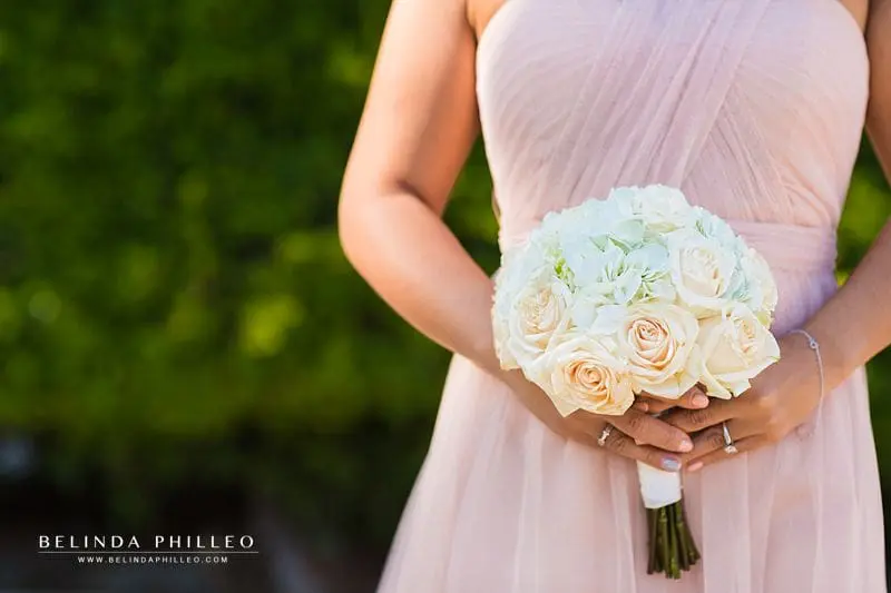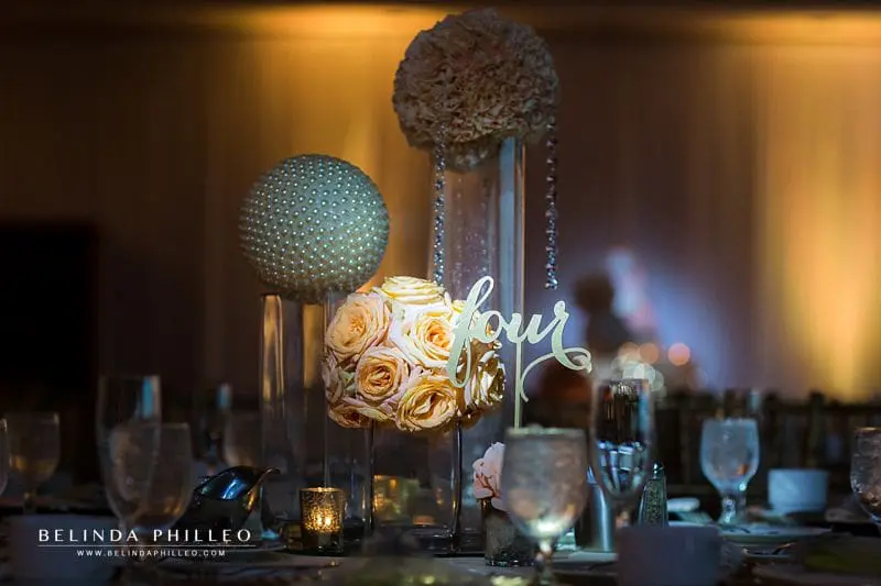 The couple chose to get married at their church and to host their elegant wedding reception at the Hyatt Regency Hotel in Long Beach, CA. They selected varying shades of pink, gold, and white for the bouquets, centerpieces, accessories, and decor.