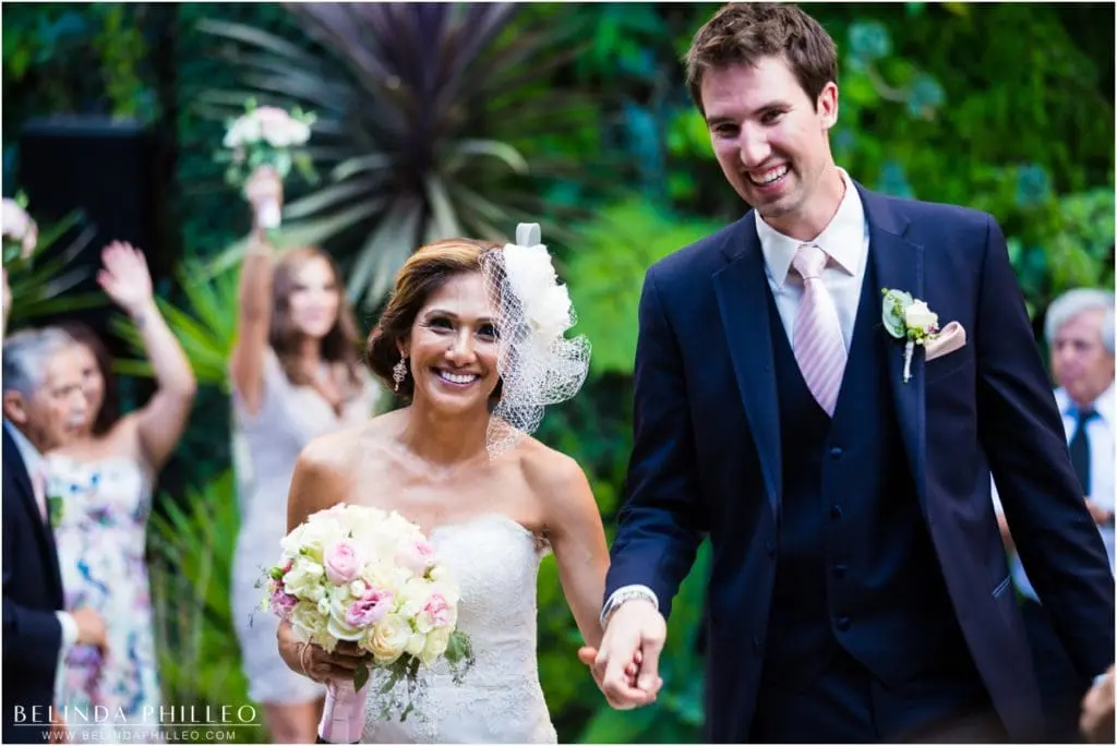Lush greenery lined the walls of the atrium of Paola and Tom’s Smogshoppe wedding ceremony in Los Angeles, CA. They vowed to spend their lives together in the presence of 100 of their dearest loved ones. Their words and joyful laughs echoed softly as they exchanged rings and sealed the deal with a kiss.