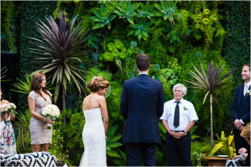 One of the best parts of having a Smogshoppe wedding is that the outdoor ceremony site features an incredible living wall of lush green plants. It’s an absolutely beautiful and dramatic backdrop for your wedding ceremony and makes for great photos too!