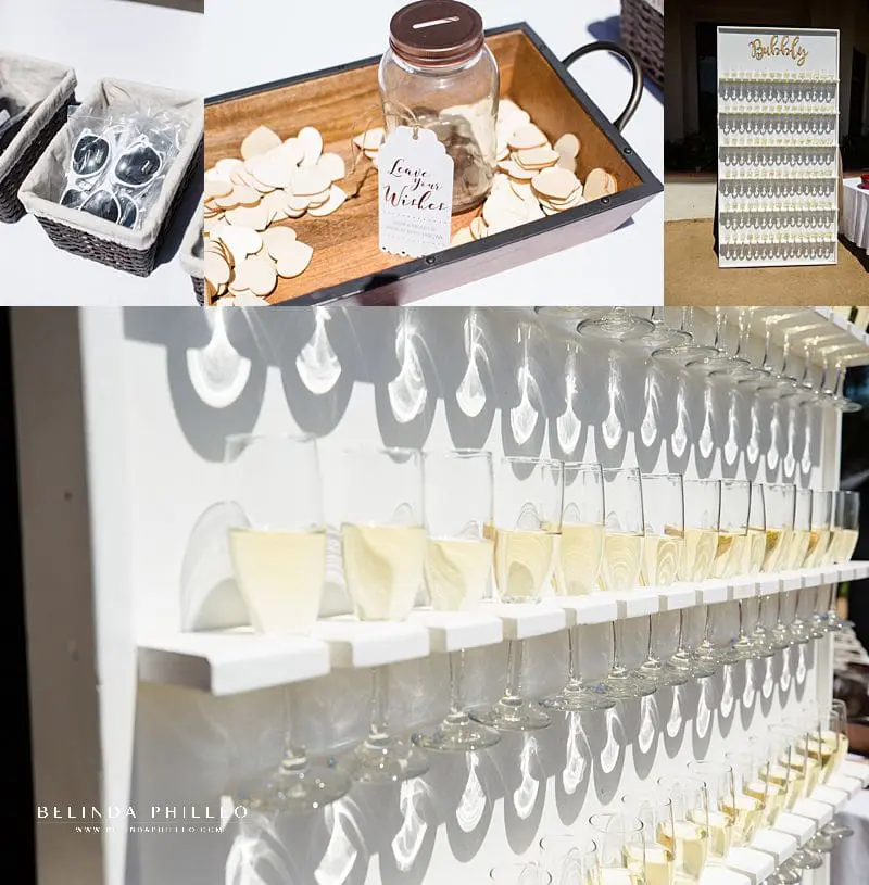 As guests made their way in to the retreat they were greeted by a champagne wall and invited to leave a note of well wishes to the couple.