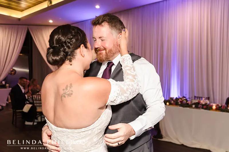 On the balcony of R’s dressing suite, the couple shared a super sweet and emotional first look moment.