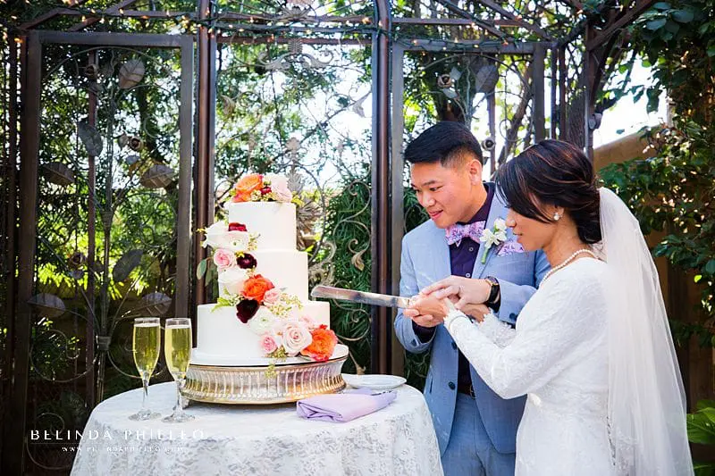 Their venue, The Hacienda, is a beautiful Spanish style garden that made a beautiful and intimate location for both their ceremony and reception festivities! The Hacienda also provided the catering and the ultra pretty cake for this wedding.
