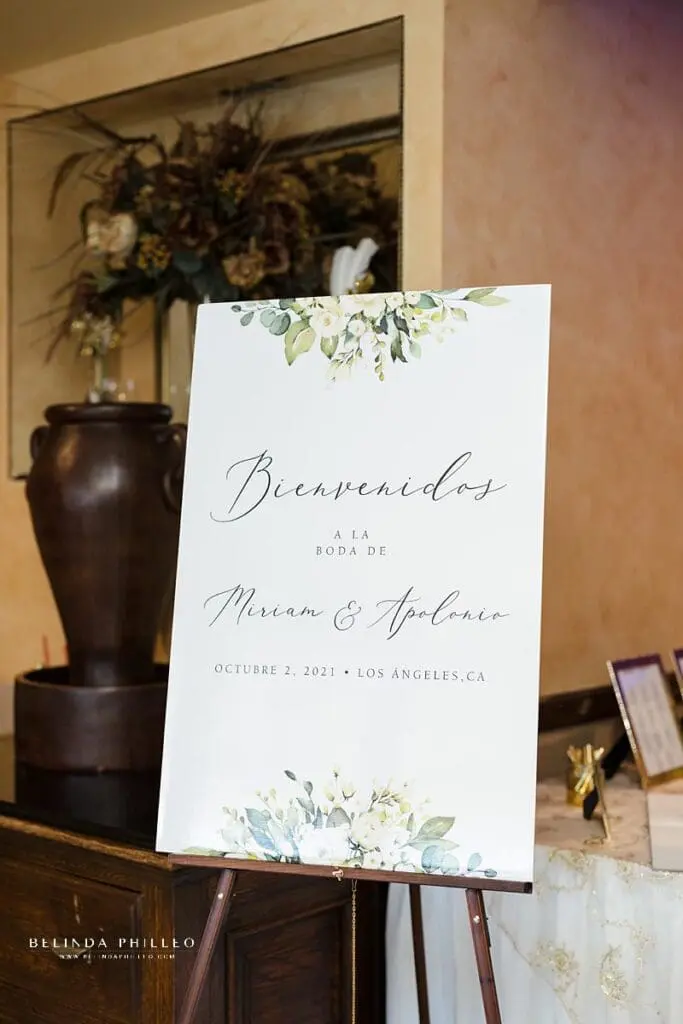 Miriam and Apolonio hosted their wedding reception at the Fiesta Mexicana Banquet Hall in Bell, CA. Guests were greeted by a sign-in table that allowed them to sign a Jenga piece for a unique keepsake that the couple could remember their wedding day with!