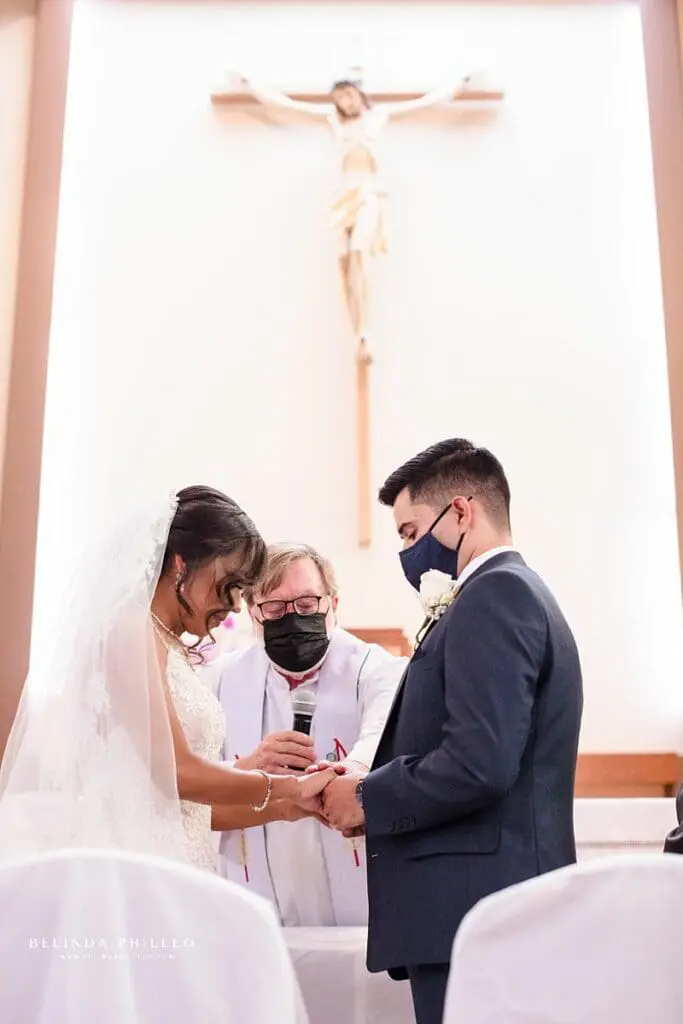 The wedding ceremony was held at Maria Regina Catholic Church in Glendale. The crowd looked on with anticipation as Miriam and her father made their entrance down the aisle. The big moment had finally arrived!