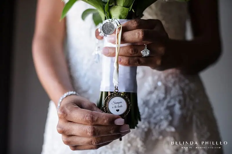 As a keepsake, and way to honor her grandfather, Miriam included an adorable accessory to her bouquet with a photo of them together on one side and a phrase “Siempre a tu todo.” on the other. Such a cute and personalized tribute!