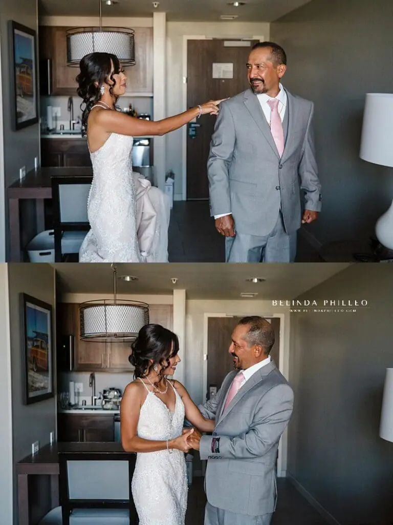After the bridesmaids go a peek, Miriam also planned to have a first look with her dad! I love it when we can schedule in a few minutes to do a first look with parents/grandparents because it’s great to be able to record their reaction as a keepsake for the couple!