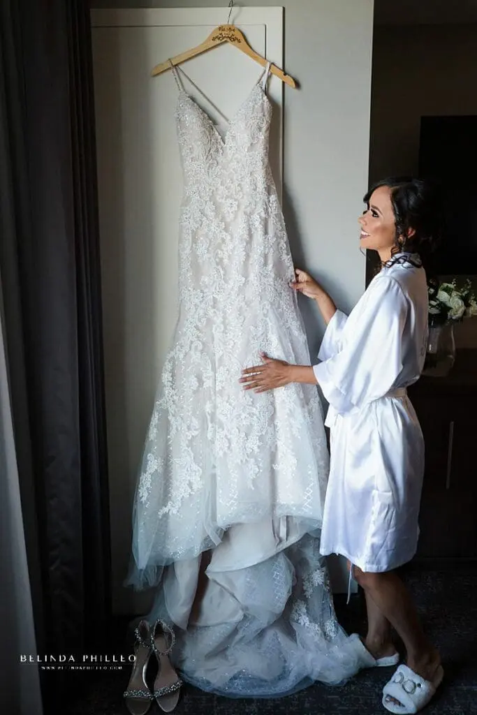 I absolutely loved the detail on Miriam’s Mia Solano bridal gown! In addition to the beautiful beading and lace, there was a subtle crisscross pattern that was so unique!